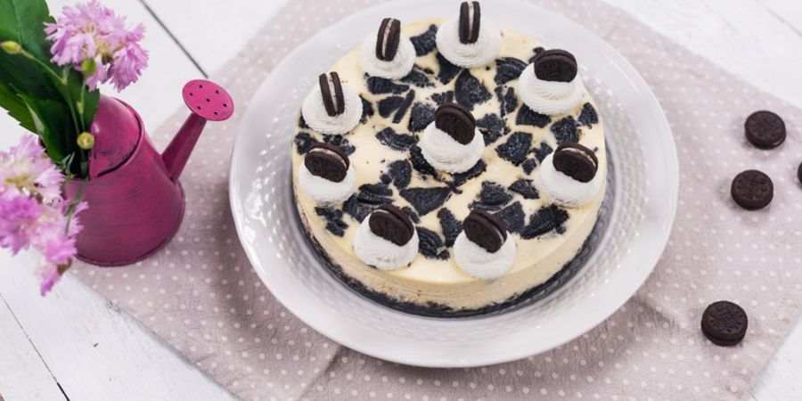 - Scoate-l apoi din forma si decoreaza-l cu frisca si biscuiti oreo.