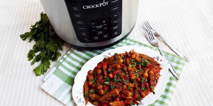 - Se seteaza Multicooker-ul Crock-Pot Express cu gatire sub presiune pe modul MEAT/STEW pentru 5 minute si se apasa START.